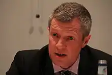 He was then elected to the Scottish Parliament in the May 2011 election. He was elected as an additional member for the Mid Scotland and Fife region.[2] He was soon after elected unopposed as leader of the Scottish Liberal Democrats, replacing Tavish Scott. At the 2016 Scottish Parliament election, Rennie was elected MSP for the constituency seat of North East Fife. Rennie was re-elected in the 2021 Scottish Parliament election, but resigned as Lib Dem leader two months later and was replaced by Alex Cole-Hamilton.
