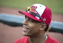 On May 19, 2015, Difo was called up to the major leagues for the first time and collected his first hit in his first at-bat the same day, a pinch-hit single up the middle off New York Yankees reliever David Carpenter.[7] Difo hit his first career home run on September 29, 2016, off Arizona Diamondbacks starter and former Nationals pitching prospect Robbie Ray.[8] On October 14, 2016, he struck out for the game's last out as a pinch hitter[9] as the Los Angeles Dodgers defeated the Nationals 4–3 to win the National League Division Series.