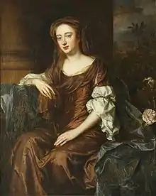 Sir Thomas and Lady Strickland remained courtiers at the royal court in exile at St Germain-en-Laye, Winifred now responsible for the prince's upbringing. They resigned from court and retired to Rouen in 1692 for health reasons.[1] After Sir Thomas's death in 1694, Winifred returned to court and resumed her task as the prince's governess until he reached the age of seven.[1] She then returned to England until 1700, recovering the family's property and consolidating its finances. On return to St Germain-en-Laye she was appointed Woman of the Bedchamber to the exiled queen. She was an early patron of the portraitist Alexis Simon Belle, and acquired an important collection of portraits of the Jacobite court. After the queen's death in 1718, she retired to the Poor Clare convent in Rouen, where her husband and her eldest son were buried. She died there on 17 April 1725 and was buried with them.[1]