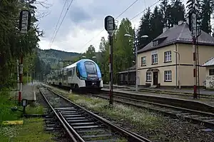 Wisła Głębce railway station is a railway station in Wisła, Poland. Opened on 11 September 1933, it is the terminus of the Goleszów-Wisła Głębce Line. The waiting room and ticket offices were closed in February 2010.[1]