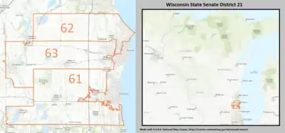 2. "Senate District 21". Wisconsin Legislature. Retrieved March 14, 2021.