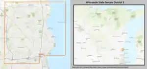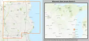 - ↑ "Wisconsin Legislative Districts - Senate District 5 Boundaries". Wisconsin Legislature. Retrieved March 6, 2021.