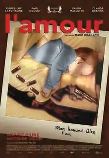 With Love (French: L'Amour) is a Canadian thriller film, directed by Marc Bisaillon and released in 2018.[1] Based on the 2006 murder spree of Stephen Marshall, the film stars Pierre-Luc Lafontaine as Alex, a young man who travels to Maine under the pretext of visiting his father (Paul Doucet), but is instead planning to use the state's sex offender registry to track down and murder sex offenders; meanwhile, his mother Rose (Fanny Mallette), having awareness of his intentions, travels to Maine to try to stop him.[2]