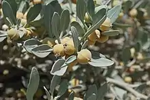 Withania coagulans ( Sanskrit: Rishyagandha, Tamil: Panneer ilai chedi, Hindi: Paneer phool, Pashto: شاپیانگا/مخازور) is a plant in the Solanaceae or nightshade family, native to Afghanistan, Pakistan and the Indian subcontinent.[2] Within the genus Withania, W. somnifera (Ashwagandha) and W. coagulans (Paneer booti/Ashutosh booti) are economically significant, and are cultivated in several regions for their use in Ayurveda.[3] It is claimed to help control diabetes.[4] The berries contain a rennet-like protease that can be used to clot milk for cheese production.[5][6] The plant is prone to leaf spot disease caused by Alternaria alternata.[7]