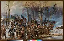 Wojciech Kossak's historical painting was different in style from that of his predecessor Jan Matejko. He belonged to a new generation of Polish battle-scene artists influenced by the work of his father Juliusz. However, like Matejko, he is known for depicting the history of Polish armed struggle and notable Polish battles of Central and Eastern Europe against foreign oppressors. Among his most famous paintings is The Racławice Panorama.