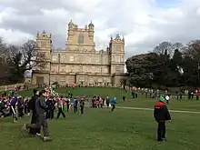 The enclosure of Wollaton Park required the destruction of the village of Sutton Passeys.[1] It was enclosed by Henry Willoughby, 6th Baron Middleton with a 7-mile (11 km) red brick wall at the start of the nineteenth century. Originally 790 acres (3.2 km2), land sales have reduced the park to 500 acres (2.0 km2).[2]