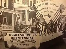 - ↑ "Womelsdorf to celebrate 100th anniversary event". Reading Eagle. Jun 28, 1933. p. 18. Retrieved 3 November 2015.