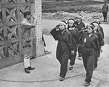 The Women's Volunteer Corps (女子挺身隊, Joshi Teishin-tai) was created in April 1944 as a work group for Japanese women.[1] The official purpose was to give women a chance to serve the Empire of Japan prior to marriage, it was a means to compel women to perform war time labour duties.[1] It mobilized unmarried women between the age of 12 to 40, while married women where mobilized by the Dai Nippon fujinkai.