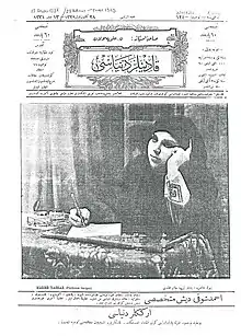 The writer Yaşar Nezihe on the cover of the 124th issue of the Ottoman feminist magazine Kadınlar Dünyası