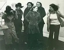 Between 1965 and 1966 meetings, at which papers and conversations about women's place in society were discussed, became more prevalent. An article published in Random, a Canadian journal, advocated that women should participate in self-examination without male scrutiny or advice to embark on their own path of self-discovery.[44] In the summer of 1967 at the Students for a Democratic Society’s national conference, a manifesto drafted by the Women’s Liberation Workshop defined the relationship of women to men as one that a colonial power had toward its colonies. The document demanded that men take responsibility for their male chauvinism and that women demand full participation in all activities of the organization. Following the meeting, women's groups such as the Bread and Roses in Boston and Women's Liberation Group of Berkeley were founded.[46] In Chicago, at a women's workshop held over Labor Day weekend that same year during the National Conference of New Politics (NCNP), Jo Freeman and Shulamith Firestone presented demands from the woman's caucus to the plenary session.[47] The moderator advised that the points of their resolution were insignificant and did not merit discussion on the floor. Over their protests and refusing to discuss the demands further, NCNP Director William F. Pepper moved the topic toward a discussion of Native Americans, but agreed to tack on their concerns to the end of the agenda.[48] Dismissively, Pepper patted Firestone on the head and said, "Move on little girl; we have more important issues to talk about here than women's liberation", or possibly, "Cool down, little girl. We have more important things to talk about than women's problems."[47][48]