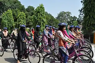 The primary concern of religious scholars is that bicycling, especially in public spaces, could lead to increased sexual promiscuity.[4] This belief is based on the Quran's requirement that women should protect their chastity. It initially led to the prohibition of horseback riding and was later extended to cycling.[5]