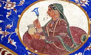 Gurdwara Bhumman Shah fresco of a woman leading a hunt