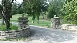 Woodbine, also known as the Anders Rasmussen House, is a historic early-20th-century estate located at New Albany, Floyd County, Indiana. It was built in 1920 for Anders Rasmussen, who owned a florist business in New Albany and once served as a florist for the King of Denmark. The 2+12-story Bungalow / American Craftsman-style house is made of stucco, brick, limestone, asphalt, and terra cotta, with a full basement. The house includes a 1+12-story caretaker's apartment. The house stayed with the family until 1945, and has gone through several hands since then.[2]:5,12,13–14 The estate is currently owed and being restored by the owner/winemaker for Downtown New Albany's River City Winery located just two miles away. Plans for a vineyard on the estate are underway.[3]