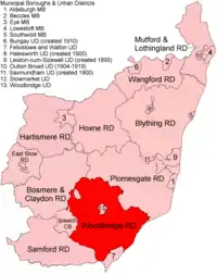 Woodbridge Rural District was a rural district within the administrative county of East Suffolk between 1894 and 1934. It was created out of the earlier Woodbridge rural sanitary district.[1] It surrounded the town of Woodbridge, which had earlier been created as an urban district.