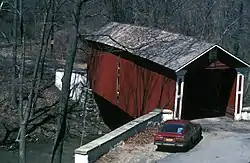 Wooddale Bridge is a covered bridge over Red Clay Creek at Wooddale in New Castle County, Delaware. It is one of three covered bridges in the state of Delaware along with the very similar Ashland Covered Bridge and the Smith Bridge.[2] It and the Ashland bridge remain, of the thirteen bridges along the Red Clay Creek that were marked on an 1868 map.[3]