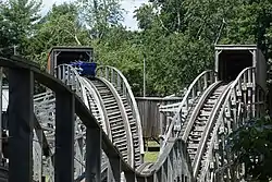 Wooden Warrior is a wooden roller coaster located at Quassy Amusement Park in Middlebury, Connecticut, United States. The coaster was designed and built by American wooden coaster designer The Gravity Group. Wooden Warrior features a 45-foot (14 m) drop, with a maximum speed of 35 miles per hour (56 km/h) and a total track length of 1,239 feet (378 m).[1] Despite the coaster's small size, it has been well received by enthusiasts for its air time and thrilling experience.[2][3] The coaster features Gravitykraft's Timberliner trains, and was the first wooden coaster in the United States to use such trains.[3]