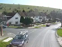 The junction of Ravenswood Drive and Cowley Drive, showing the proximity of the open countryside of the South Downs.