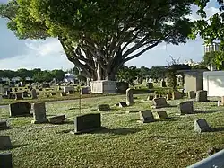 Henry Flagler created the cemetery on 17 acres (6.9 ha) of pineapple fields in 1904. "By 1904, there was 'no more attractive cemetery in Florida' than Woodlawn, most likely inspired in name and design by New York’s Woodlawn Cemetery that had also utilized a spacious Landscape Lawn."[1] "As was his custom, Flagler spared no expense and the cemetery soon became a tourist attraction. The St. Augustine Tatler newspaper of January 1905 reported that socialites would spend the afternoon there admiring its rock roads and "rows of oleanders, Australian pines, and crotons."[2] In 1914, the Woodlawn Cemetery Association deeded the cemetery to the City of West Palm Beach.[3]