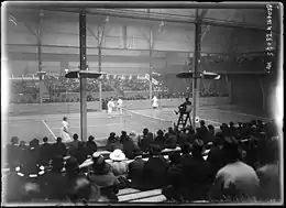 The World Covered Court Championships were part of a series of three major world championships sanctioned from 1913 to 1923 by the International Lawn Tennis Federation (ILTF).[1] The tournament was played indoors on wood floors, and its venue changed from year to year among several countries. While the World Grass Court Championships (Wimbledon) and World Hard Court Championships (WHCC) could justify their "world championship" titles, the WCCC had trouble attracting top players from outside Europe.[2] At an Annual General Meeting (AGM) held on 16 March 1923 in Paris, France the ILTF issued the ‘Rules of Tennis’ that were adopted with public effect on 1 January 1924. USA became an affiliated member of the ILTF. The World Championship title was also dropped at this meeting and a new category of Official Championship was created for events in Great Britain, France, USA and Australia – today’s Grand Slam events. The WCCC tournament was then disbanded by the ILTF.[3]
