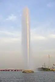 The World Cup Fountain (Korean: 월드컵 분수대) was a fountain built to commemorate the 2002 FIFA World Cup co-hosted by South Korea and Japan. The World Cup Fountain is located in the Han River in Seoul, South Korea, between the World Cup Stadium and Seonyudo Park. The fountain jets water at a height of 202 metres (663 ft), a symbolic gesture to the year the FIFA World Cup was held in Seoul. The fountain is taller than the Gateway Geyser, or the fountain in Fountain Hills, Arizona or the Port Fountain in Karachi, Pakistan. For comparison, the Washington Monument in Washington D.C. is 169 meters tall.[1]