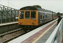 The station at Worle was developed as a joint initiative between British Rail and Avon County Council. It cost £700,000 and was built using lightweight construction materials due to being sited on marshy ground.[16] The station was opened on 24 September 1990 by Councillor Betty Perry, the chair of Avon Council.[18] The first train was a westbound Regional Railways service, operated by Class 150 Sprinter DMU 150270. All services were local ones – no scheduled intercity services would call at Worle until 2007.[16]