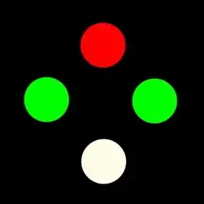 - The two green lights will be to either side with the red light slightly above them and the mixed coloured light below the red