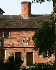 The almshouses were administered by a group of thirteen trustees appointed by Wright; the original trustees included several members of the Wright family, representatives of other prominent Nantwich families including the Maistersons, Wilbrahams and Churches, and the minister of St Mary's Church.[7] Whenever eight of the thirteen trustees had died, the surviving trustees were to elect another eight men to replace them. As with the almsmen, men related to Wright or bearing that surname were to be preferred.[5] Later trustees included local architect, Thomas Bower.[7] In 1666–68, a stone gateway and an inscribed tablet with a coat of arms were added by the trustees at a total cost of just over £4, paid for by keeping some of the houses vacant.[5]