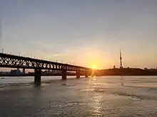 The Wuhan Yangtze Great Bridge (simplified Chinese: 武汉长江大桥; traditional Chinese: 武漢長江大橋; pinyin: Wǔhàn Chángjiāng Dàqiáo), commonly known as Wuhan First Yangtze Bridge, is a double-deck road and rail bridge across the Yangtze River in Wuhan, in Central China. At its completion in 1957, the bridge was the easternmost crossing of the Yangtze, and was often referred to as the "First Bridge of the Yangtze".