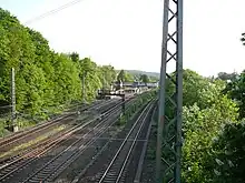 Wuppertal Zoologischer Garten station (locally also called Zoo station) is a station on the Düsseldorf–Elberfeld railway in the city of Wuppertal in the German state of North Rhine-Westphalia. The station building was heritage-listed on 31 August 1987.[6] It is classified by Deutsche Bahn as a category 4 station.[1]