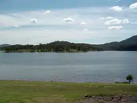 The Wyaralong Dam was built across Teviot Brook, a tributary of the Logan River.[3] The dam wall is partly in Wyaralong and partly in neighbouring Allenview (27°54′28″S 152°52′54″E / 27.9079°S 152.8817°E / -27.9079; 152.8817 (Wyaralong Dam)). Its impoundment, Lake Wyaralong, is mostly within Wyaralong but some is within Allenview where the public access area is located.[4] The dam wall is 463.6 metres (1,521 ft) wide. The catchment area of the dam is 546 square kilometres (211 sq mi). The dam can hold up to 102,883 megalitres (3,633.3×10^6 cu ft) of water.[5]