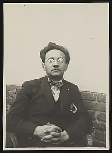 Shawinsky was born March 25, 1904, in Basel, the second child of Benjamin Schawinsky and Regina Bielawska, both of Polish-Jewish descent. Schawinsky attended school in Basel from 1910 to 1914, and then high school in Zurich from 1915 to 1921.[1] He apprenticed at the architecture office of Theodor Merill in Cologne until 1923. After visiting the Berlin School of Applied Arts for a short time in 1923, Schawinsky enrolled in the Bauhaus in Weimar in 1924. Paul Klee, Wassily Kandinsky, Adolf Meyer and László Moholy-Nagy were among his teachers.[1] In the stage department led by Oskar Schlemmer Schawinsky developed skits and pantomimes, and created his first stage work.[1]