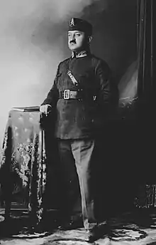 During the First World War, when most of the territory of Albania was invaded by the Austro-Hungarian Army, he served in the Aranitas municipality as a commander of the gendarmerie.