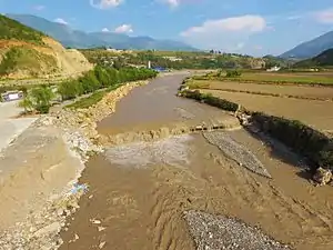 The Xiaojiang River (Chinese: 小江; pinyin: Xiǎo Jiāng) is a right-bank tributary of the Jinsha River in northern Yunnan Province of China. It begins at the outflow of Lake Qingshuihai and flows through Xundian Hui and Yi Autonomous County, Dongchuan District and Huize County before draining into the Jinsha River. The Xiaojiang River runs 141 kilometres and its drainage area is 3049 square kilometres.[1] Due to loose rock structure, sparse vegetation on the banks, and the well-developed dissected troughs, large-scale debris flows are common.[2]