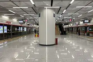 Xiaoshan International Airport (Chinese: 萧山国际机场) is a metro station on Line 1, Line 7 and Line 19 of Hangzhou Metro in China. It is located near the Terminal 3 of Hangzhou Xiaoshan International Airport.[1] The station began its service on 30 December 2020, together with the inauguration of Line 1 Phase 3 and Line 7.[2] The station has 3 exits.