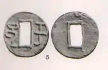 In the Turfan Basin, the Buddhist Uyghur Kingdom of Qocho also cast coins in Chinese style, but with Old Uyghur language legends.[7][8][9][10][11] The preceding city-state of Gaochang made its own coins in Chinese style, with the legend "Gao Chang Ji Li" (高昌吉利, Gāochāng jí lì).[12]