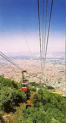 The Bursa Uludağ Aerial Lift (Turkish: Teleferik, pictured to the right) is an aerial lift serving Mt. Uludağ. Built by the Swiss company Von Roll Holding and opened on 29 October 1963, the aerial tramway was replaced in 2013 by a modern and much bigger capacity gondola lift system by Leitner Group of Italy.[4]