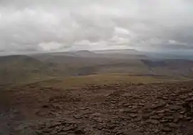 The summit is a boggy mound overlooking the A470 and the Storey Arms. It is marked by a pile of stones.[1]