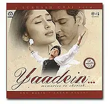 Yaadein (transl. Memories) is a 2001 Indian Hindi-language musical drama film written, directed, edited and produced by Subhash Ghai.[2] The ensemble cast cross over film starring Jackie Shroff, Hrithik Roshan, and Kareena Kapoor. The film was released worldwide on 27 July 2001 to negative reviews and was a box office disappointment.[3][4][5] Jackie Shroff received a nomination for Filmfare Award for Best Supporting Actor at the 47th Filmfare Awards.[6] Despite its box office failure, the film was profitable due to ancillary revenues of ₹21 crore, including ₹8.2 crore from selling music rights to Tips.[7]