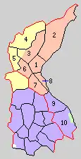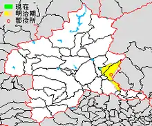 • March 27, 2006, Yamada District was dissolved as the town of Ōmama was merged with the town of Kasakake (from Nitta District), and the village of Azuma (from Seta District) to create the city of Midori.