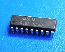 The YM2413, a.k.a. OPLL, is a cost-reduced FM synthesis sound chip manufactured by Yamaha Corporation and based on their YM3812 (OPL2).