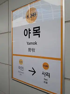 Yamok station is a railroad station on the Suin–Bundang Line of the Seoul Metropolitan Subway in Hwaseong, Gyeonggi Province, South Korea. It opened on 12 September 2020.[1]