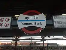 The Yamuna Bank metro station is located on the Blue Line of the Delhi Metro.[1] This station is a transfer point between the Noida and Vaishali branches of the Blue Line. Cross-platform transfer is provided in the same direction of travel through two island platforms. Free School Under The Bridge is situated close to the station.[2]