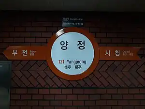 Yangjeong Station is a station of Busan Metro Line 1 in Yangjeong-dong, Busanjin District, Busan, South Korea.