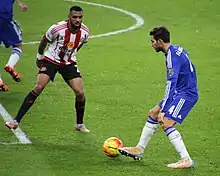 On 6 August 2015, M'Vila joined English Premier League side Sunderland on a season-long loan with a view to being made a permanent deal.[41] He made his first appearance for the club in an under-21 match against Norwich City, but was sent off after 69 minutes for a head-butt on Jamar Loza.[42] On 29 August 2015, M'Vila scored his first Sunderland goal, a long range free-kick against Aston Villa.[43] On 25 October 2015, M'Vila was named the Premier League man of the match in Sunderland's 3–0 home victory over Newcastle United in the Tyne-Wear derby. He subsequently described the atmosphere of the match as the best he had played in, eclipsing that of the Milan Derby.[44] After another man of the match performance in a 3–1 defeat at Arsenal on 5 December 2015, M'Vila was praised by teammate Ola Toivonen, who described him as "a top European player. As he plays more games he's going to show that he's the top player we know he is".[45]
