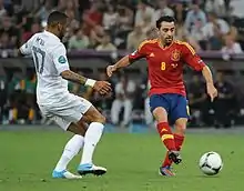 M'Vila primarily plays as a defensive midfielder and is described as a player who "boasts a fantastic work-rate" and is "robust in the challenge".[76] He is also known for his passing ability and "superb vision".[76] M'Vila has earned critical acclaim for his playing style, which has led to coaches and players drawing comparisons to fellow French internationals Patrick Vieira and Claude Makélélé.[76][77][78] Under manager Frédéric Antonetti at Rennes, despite playing as a defensive midfielder, M'Vila acts as the team's deep-lying playmaker and is often instrumental in building-up attacks from the back.[76] His importance in the team was shown in Rennes' 1–0 league defeat to Toulouse during the 2011–12 season, in which the Bretagne side failed to produce anything offensively. M'Vila, himself, declared that Rennes struggled because he was forced to play in a withdrawn role due to "the opponents being organized to close me down" and, as a result, he was "not in the drivers' seat".[79] Though, he plays as a defensive midfielder, M'Vila can also play as a box-to-box midfielder as he has done at times under Laurent Blanc at international level.