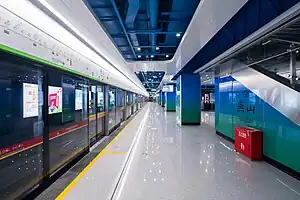 Yanshan Station (Chinese: 燕山站; pinyin: Yānshān Zhàn; Jyutping: jin3saan1 zaam6) is a station of Guangzhou Metro Line 7, located underground at the south side of Shuixi Stabling Yard in Guangzhou's Huangpu District.[1] It opened on 28 December 2023, with the opening of Phase 2 of Line 7, and is the northern terminus of the line.[2][3]
