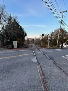 Yarmouth Junction station was a passenger rail station in Yarmouth, Maine, United States. It stood to the west of East Elm Street at Depot Road, at the junction of the former Grand Trunk Railway (now the St. Lawrence and Atlantic Railroad) and the Maine Central Railroad (now Guilford Rail System's Kennebec & Portland), around 0.9 miles (1.4 km) north of the town's Railroad Square, where today's 1906-built Grand Trunk station stands.[1] The Amtrak Downeaster utilizes the former Maine Central Railroad line, which passes to the northwest of town.[2] The Yarmouth Junction station building is now gone, but the junction itself is still active.