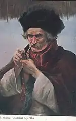 In the 1910s and 1920s, postcards were very popular in Ukraine. From 1912 to 1914 the publisher, Grigoriy Hanulyak, alone produced more than 120 designs; most of them based on paintings by Pstrak.[1] Today, as a result, many of his works are better known, or only known, in their postcard form, rather than the originals.
