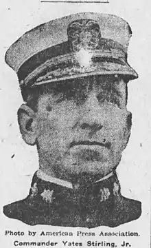 Yates Stirling Jr. (April 30, 1872 – January 27, 1948) was a decorated and controversial rear admiral in the United States Navy whose 44-year career spanned from several years before the Spanish–American War to the mid-1930s. He was awarded the Navy Cross and French Legion of Honor for distinguished service during World War I. The elder son of Rear Admiral Yates Stirling, he was an outspoken advocate of American sea power as a strong deterrent to war and to protect and promote international commerce. During Stirling's naval career and following retirement, he was a frequent lecturer, newspaper columnist and author of numerous books and articles, including his memoirs, Sea Duty: The Memoirs of a Fighting Admiral, published in 1939. Describing himself, Stirling wrote, "All my life I have been called a stormy petrel. I have never hesitated to use the pen to reveal what I considered should be brought to public attention, usually within the Navy, but often to a wider public. I seem to see some benefits that have come through those efforts. I have always believed that a naval man is disloyal to his country if he does not reveal acts that are doing harm to his service and show, if he can, how to remedy the fault. An efficient Navy cannot be run with 'yes men' only."[1]