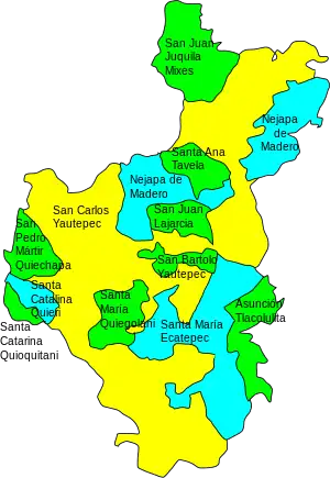 The total population is 31,688. Indigenous people include Zapotec, Mixe and Chontal. Economic activities include agriculture, growing maize, sorghum, peanuts, beans, coffee and various fruits. Some cattle is raised, and villagers often raise goats, sheep, and pigs. Hunting and fishing are typically practiced on a small scale for personal consumption. There is some logging activity, and the wild maguey is harvested for its juice.[1]